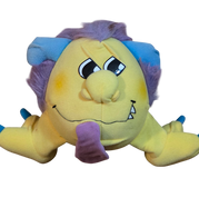 1986 Matchbox Grumples Razzcale Toy Yellow Purple Rasberry Blowing Plush