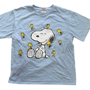 Peanuts Snoopy And Woodstock Embroidered Light Blue T-Shirt Size Large